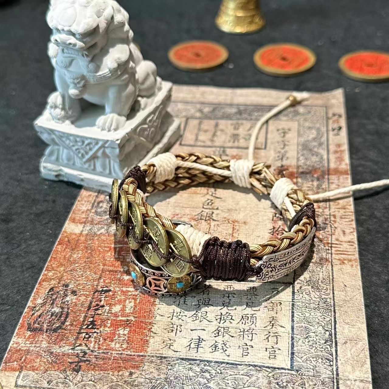 Product ENJOY·LIFE Five Emperor Coins Hand-woven Bracelet Vintage Style Niche Design Elegant Bracelet - https://enjoy-gourd.com/products/five-emperor-coins-hand-woven-bracelet-vintage-style-niche-design-elegant-bracelet